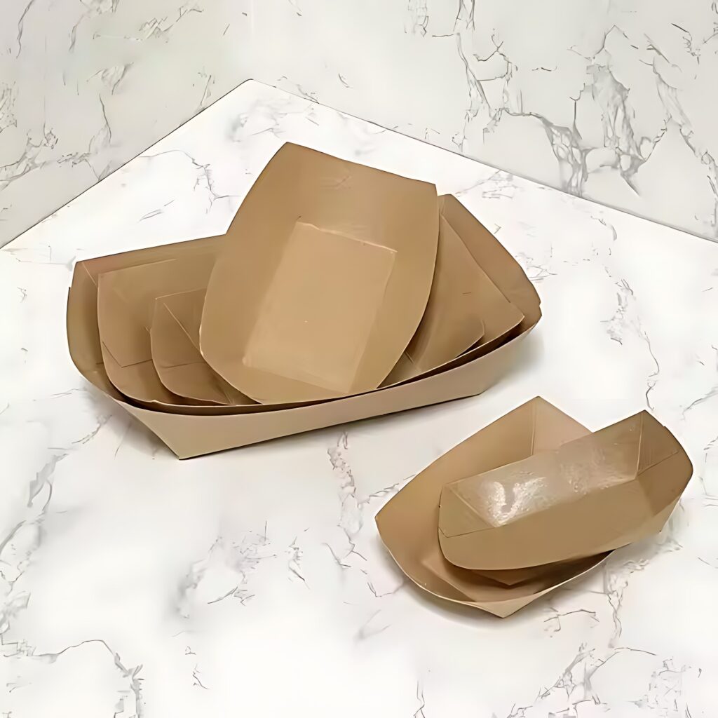 Eco-friendly Disposable Kraft Paper Tray | Waterproof Oilproof Takeaway Fried Chicken Hot Dog Chips Boat Tray Disposable Kraft Paper Tray